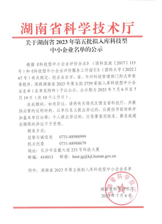 湖南省2023年第5批拟入库科技型中小企业名单公示正文.jpg PICTURE
