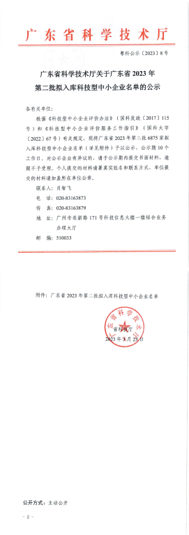 广东省2023年第2批拟入库科技型中小企业名单公示正文.jpg PICTURE