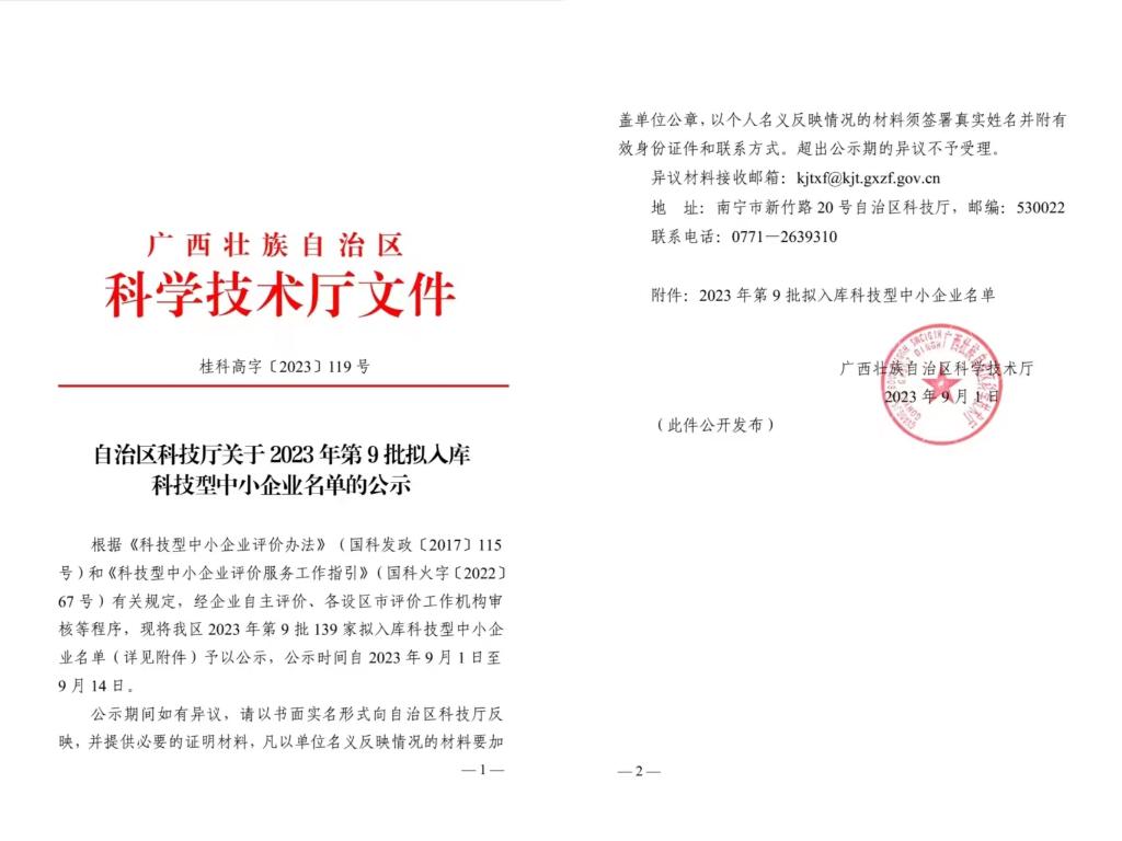 广西壮族自治区2023年第9批拟入库科技型中小企业名单公示正文.jpg PICTURE