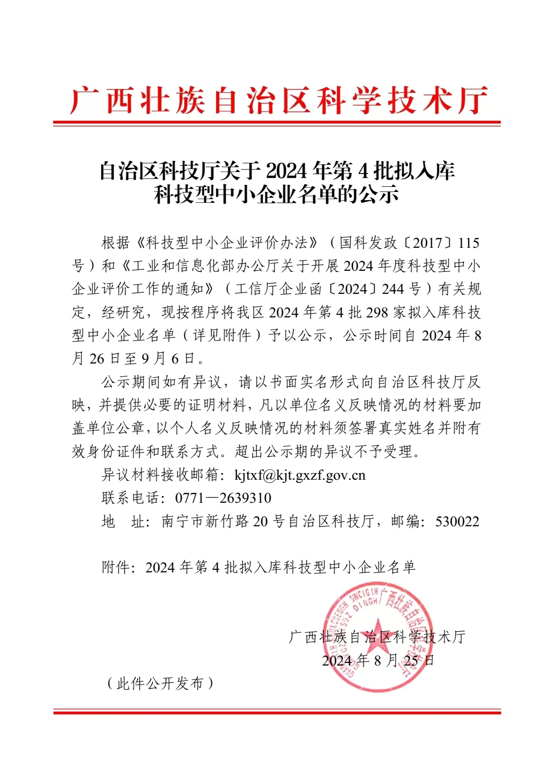 广西壮族自治区2024年第4批拟入库科技型中小企业名单公示正文.jpg PICTURE