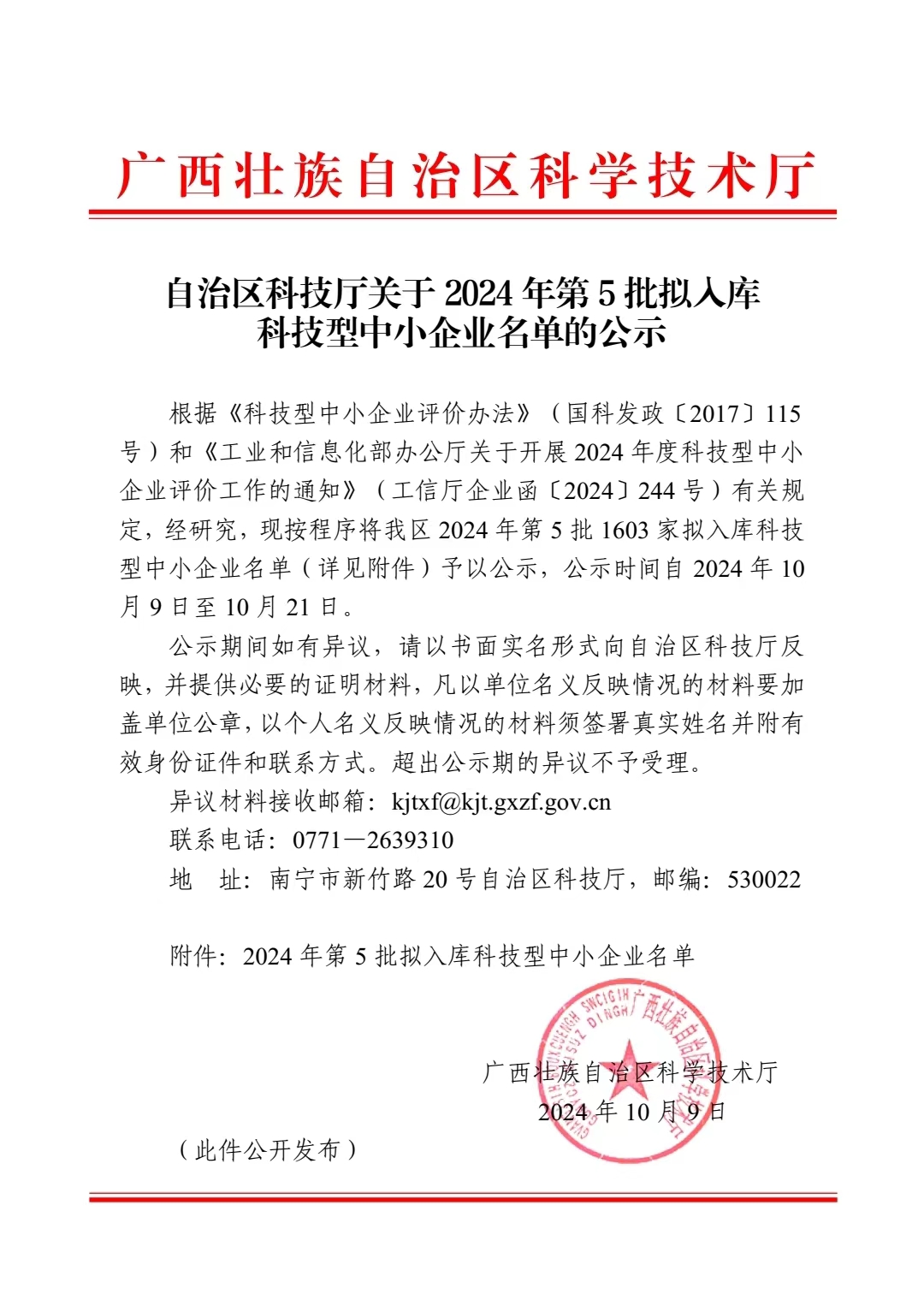 广西壮族自治区2024年第5批拟入库科技型中小企业名单公示正文.jpg PICTURE