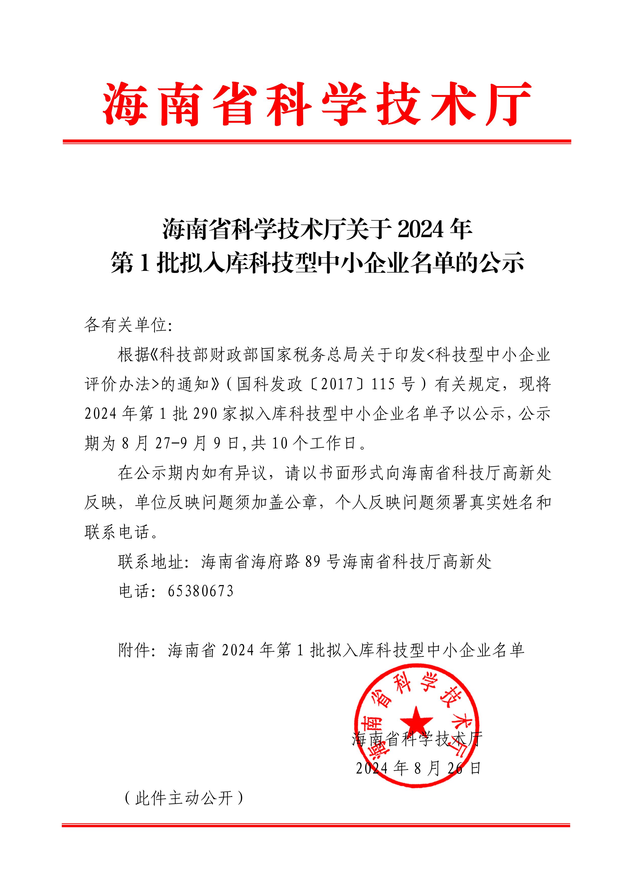 海南省2024年第1批拟入库科技型中小企业名单公示正文.jpg PICTURE