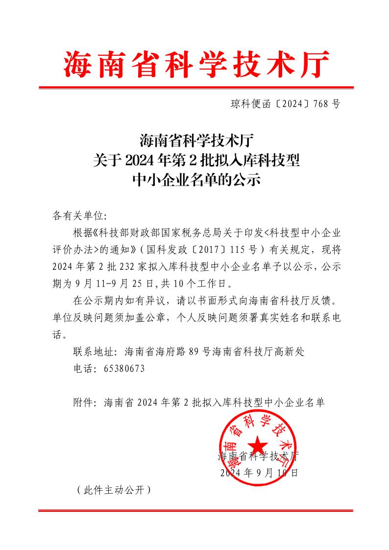 海南省2024年第2批拟入库科技型中小企业名单公示正文.jpg PICTURE