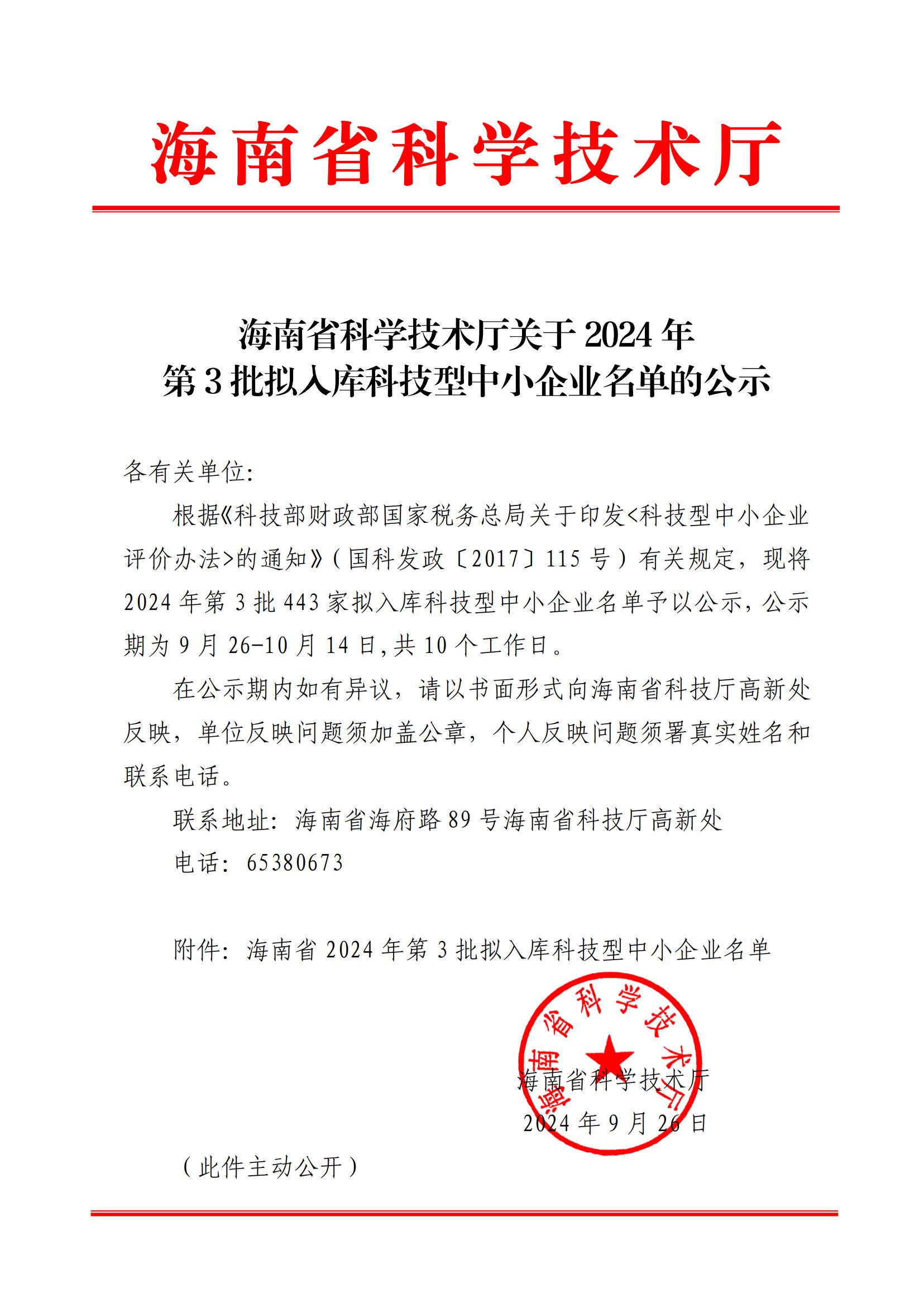 海南省2024年第3批拟入库科技型中小企业名单公示正文.jpg PICTURE