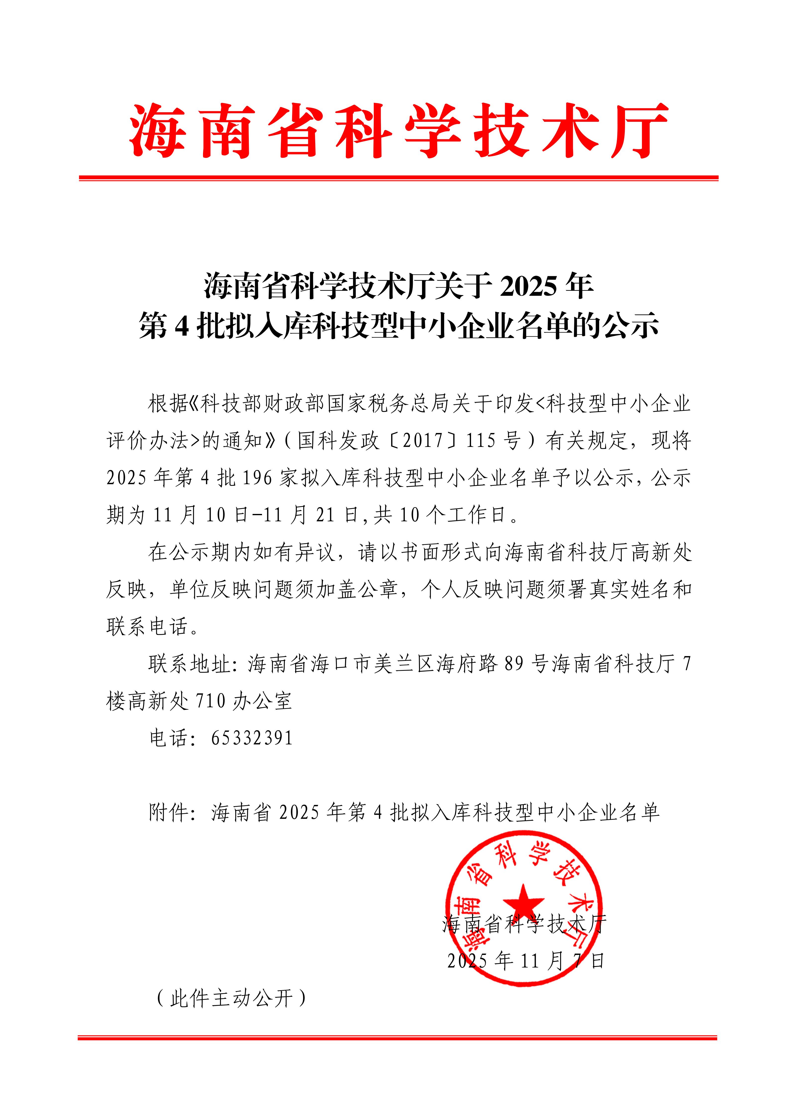 海南省2025年第4批拟入库科技型中小企业名单公示正文.jpg PICTURE