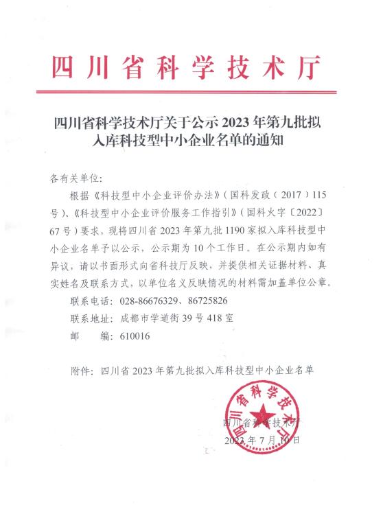 四川省2023年第9批拟入库科技型中小企业名单公示正文.jpg PICTURE