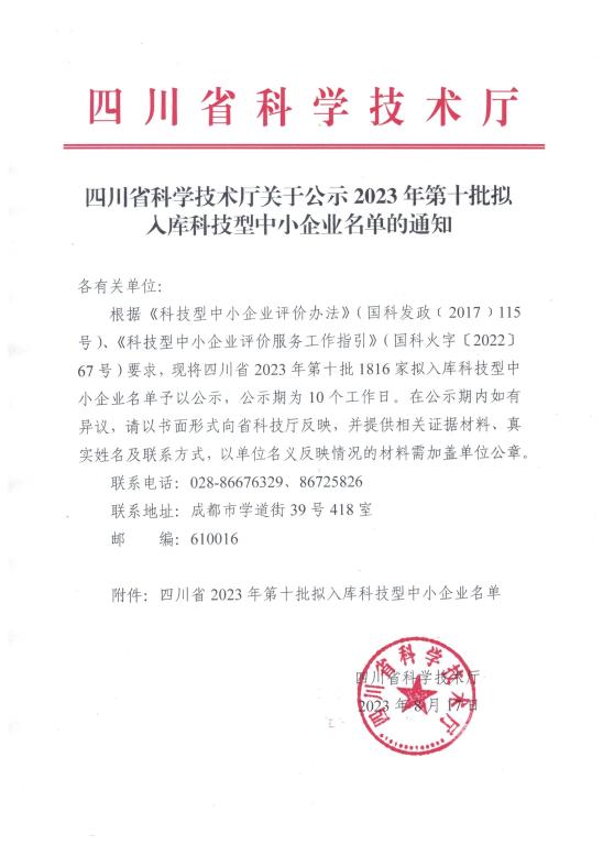 四川省2023年第10批拟入库科技型中小企业名单公示正文.jpg PICTURE