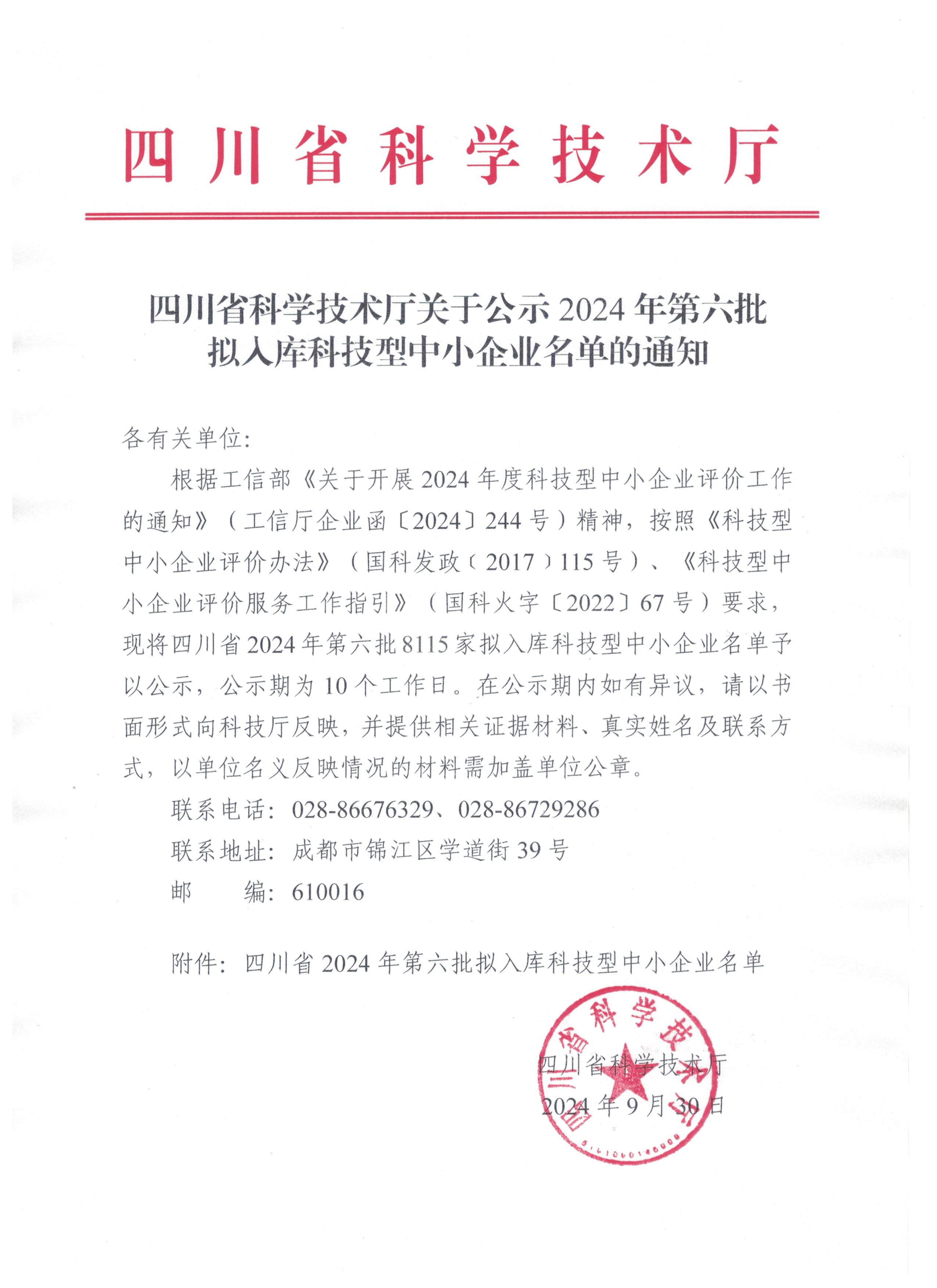 四川省2024年第6批拟入库科技型中小企业名单公示正文.jpg PICTURE