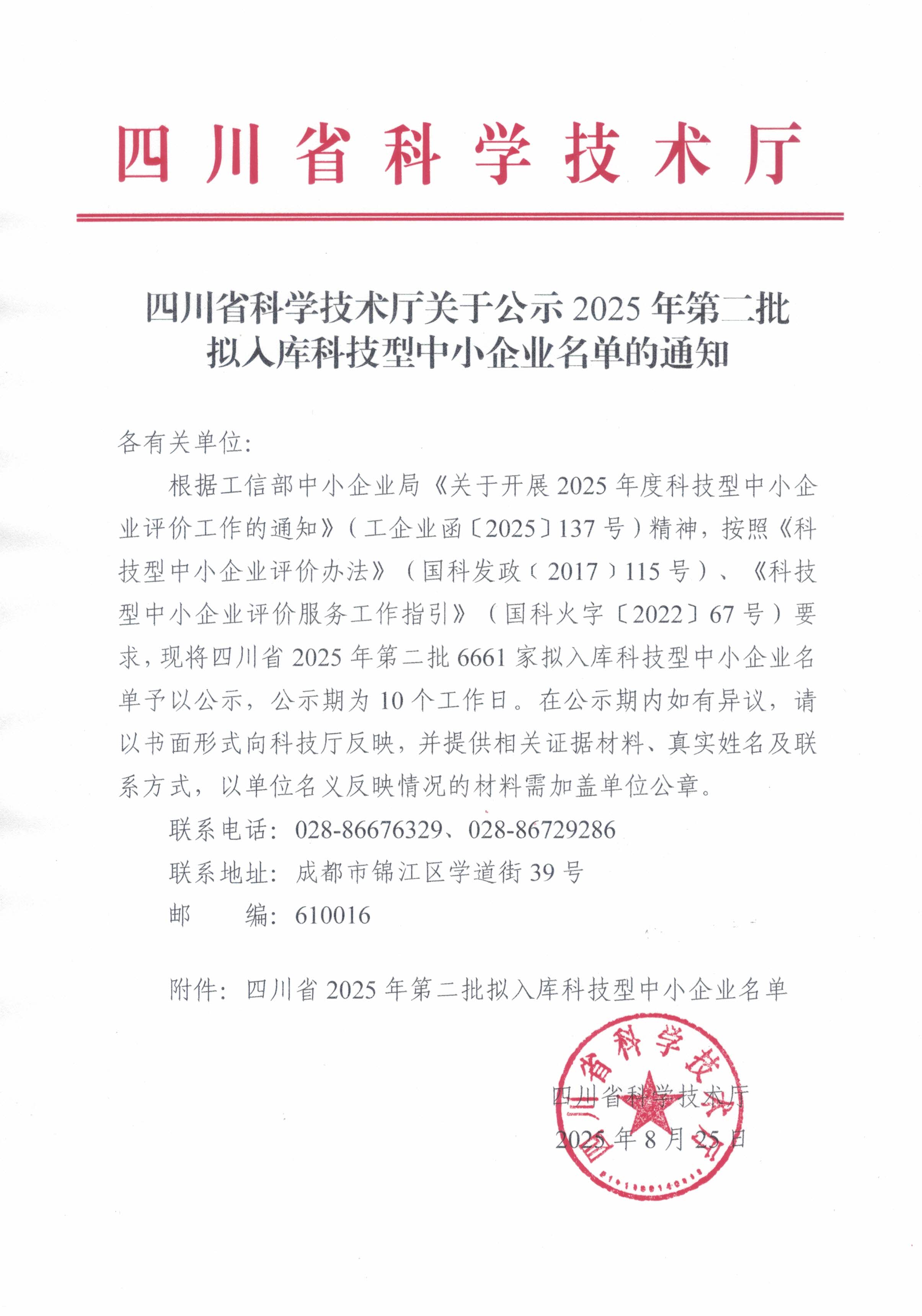 四川省2025年第2批拟入库科技型中小企业名单公示正文.jpg PICTURE