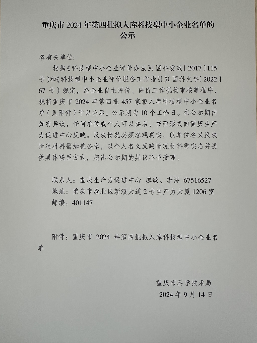 重庆市2024年第4批拟入库科技型中小企业名单公示正文.jpg PICTURE