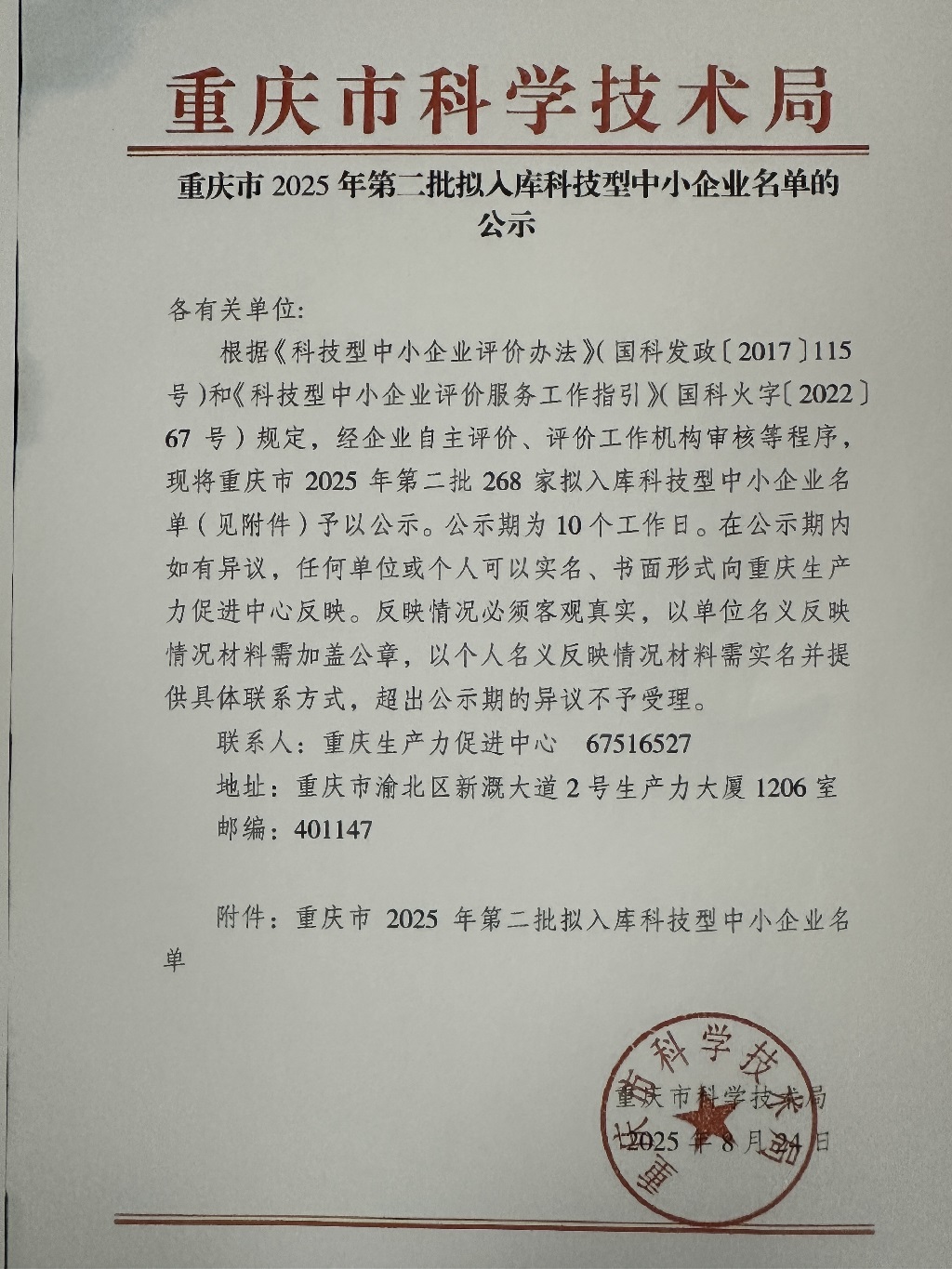 重庆市2025年第2批拟入库科技型中小企业名单公示正文.jpg PICTURE