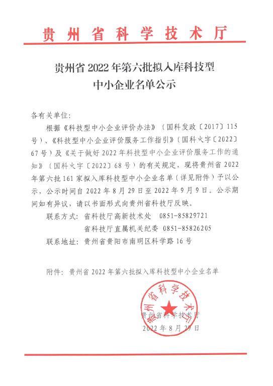 贵州省2022年第6批拟入库科技型中小企业名单公示正文.jpg PICTURE