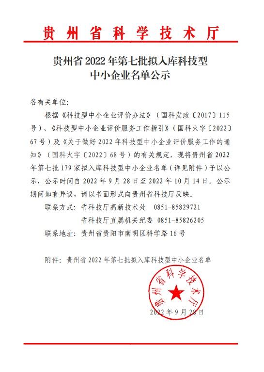 贵州省2022年第7批拟入库科技型中小企业名单公示正文.jpg PICTURE