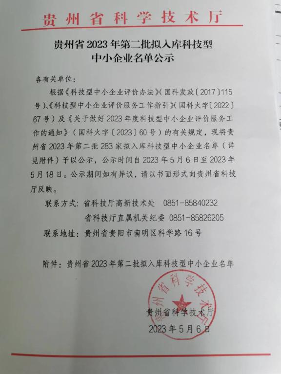 贵州省2023年第2批拟入库科技型中小企业名单公示正文.jpg PICTURE