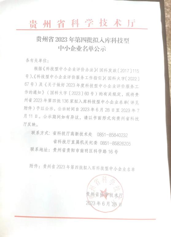 贵州省2023年第4批拟入库科技型中小企业名单公示正文.jpg PICTURE