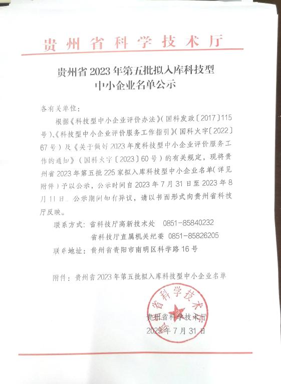 贵州省2023年第5批拟入库科技型中小企业名单.pdf FILE