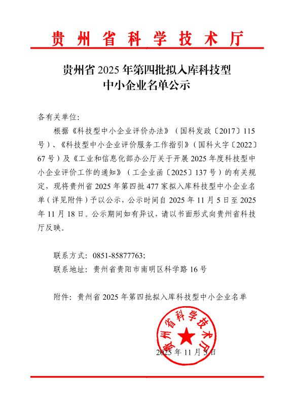 贵州省2025年第4批拟入库科技型中小企业名单公示正文.jpg PICTURE