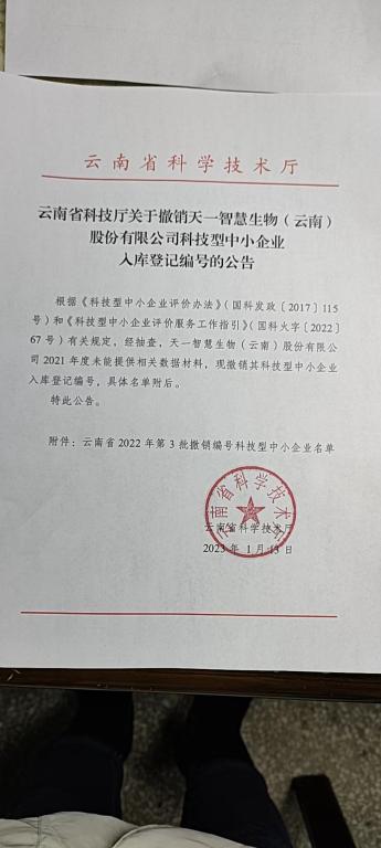 云南省2022年第3批撤销编号科技型中小企业名单公告正文.jpg PICTURE