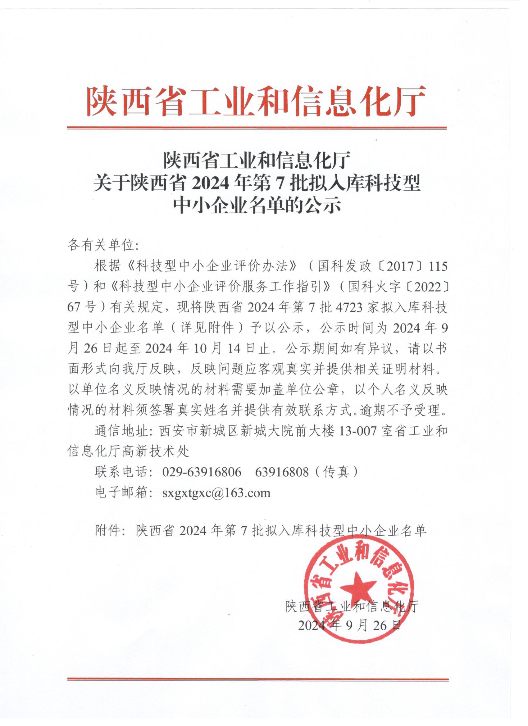 陕西省2024年第7批拟入库科技型中小企业名单公示正文.jpg PICTURE