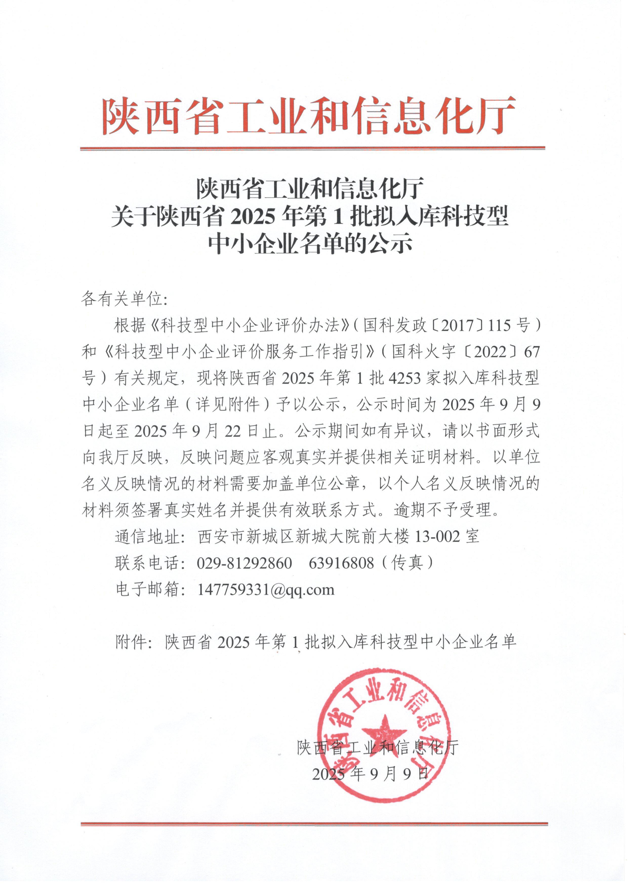 陕西省2025年第1批拟入库科技型中小企业名单公示正文.jpg PICTURE