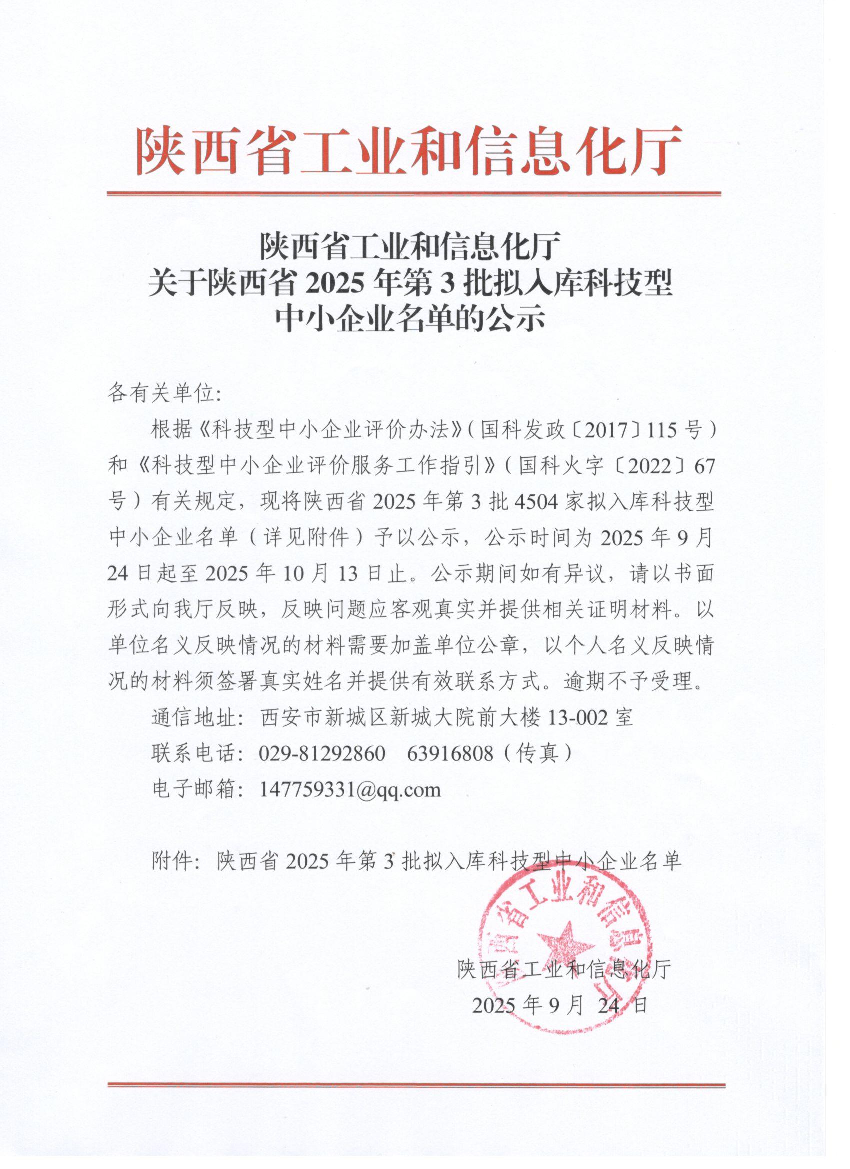 陕西省2025年第3批拟入库科技型中小企业名单公示正文.jpg PICTURE