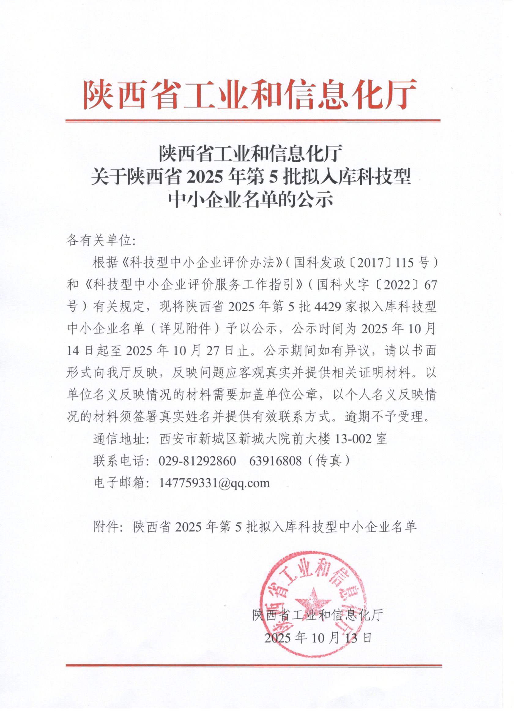 陕西省2025年第5批拟入库科技型中小企业名单公示正文.jpg PICTURE