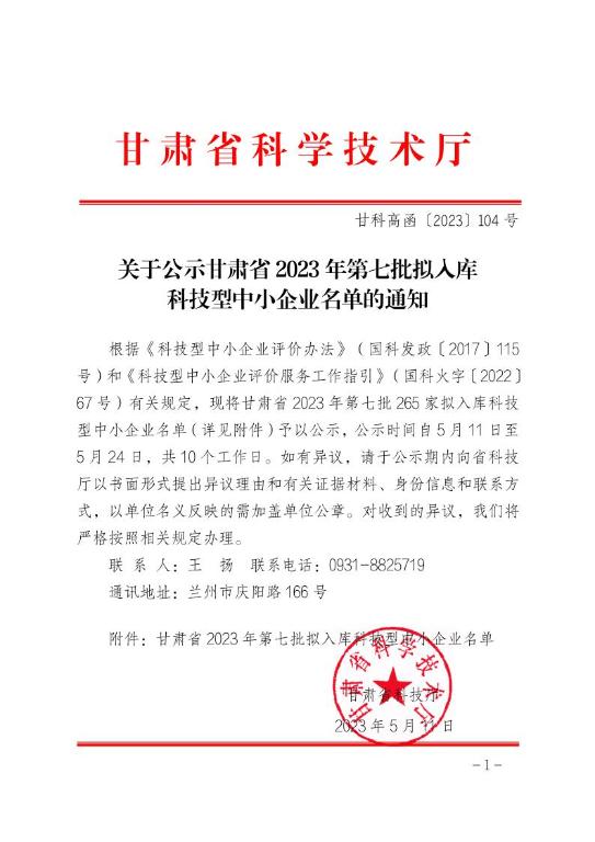 甘肃省2023年第7批拟入库科技型中小企业名单公示正文.jpg PICTURE