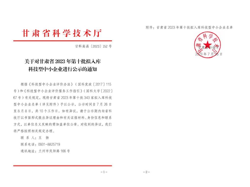 甘肃省2023年第10批拟入库科技型中小企业名单公示正文.jpg PICTURE