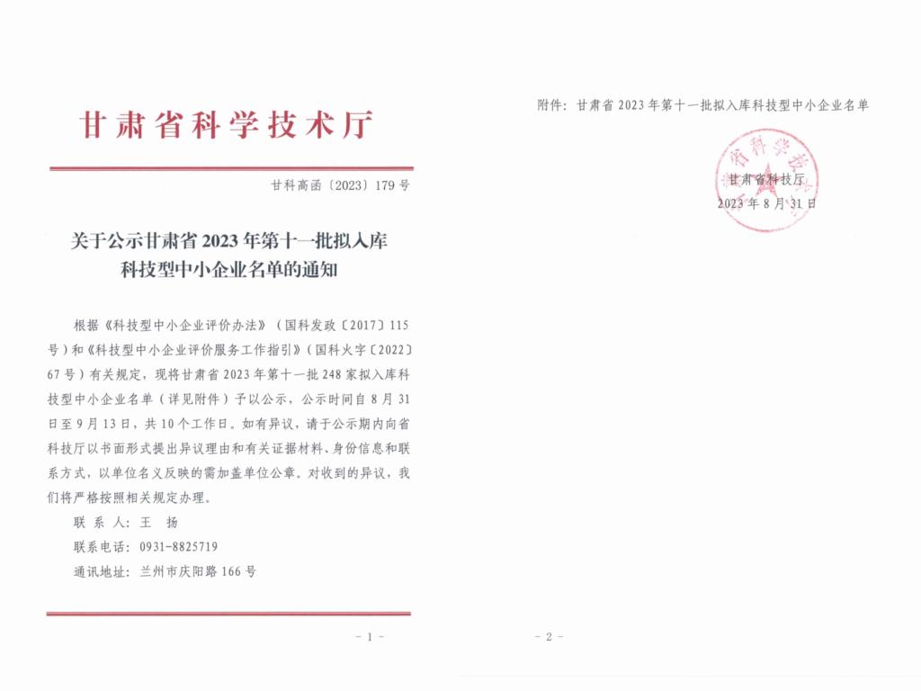 甘肃省2023年第11批拟入库科技型中小企业名单公示正文.jpg PICTURE