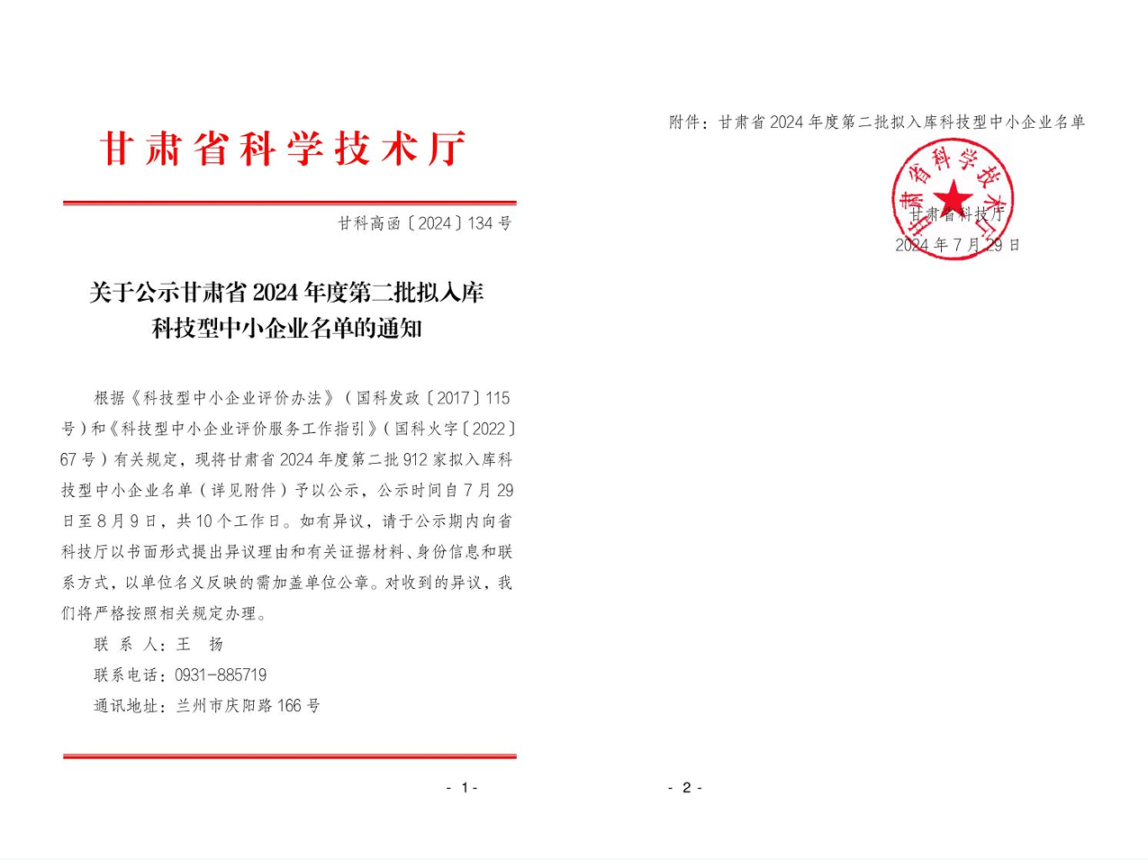 关于公示甘肃省2024年度第二批拟入库科技型中小企业名单的通知.jpg PICTURE