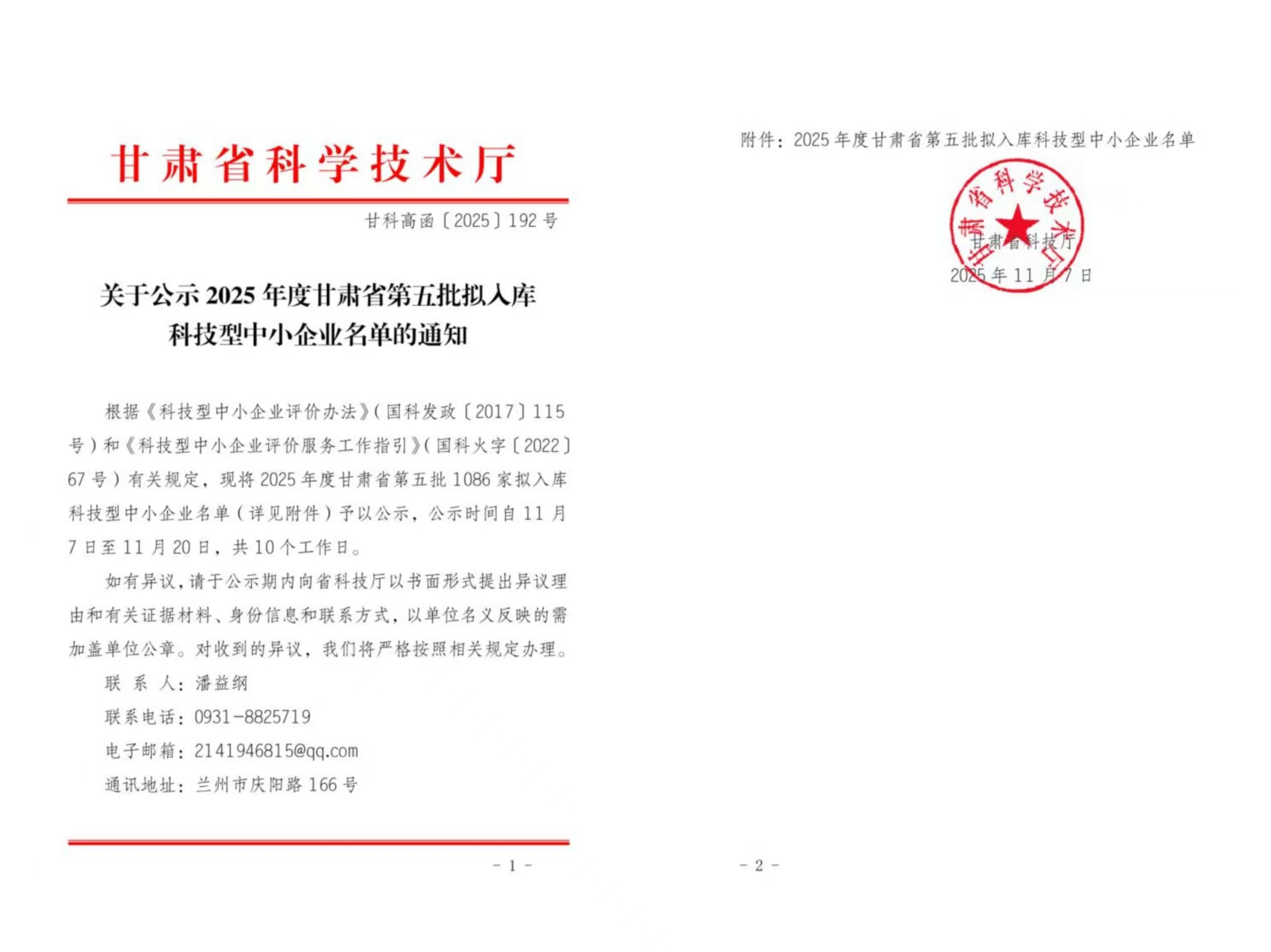 甘肃省2025年第5批拟入库科技型中小企业名单公示正文.jpg PICTURE