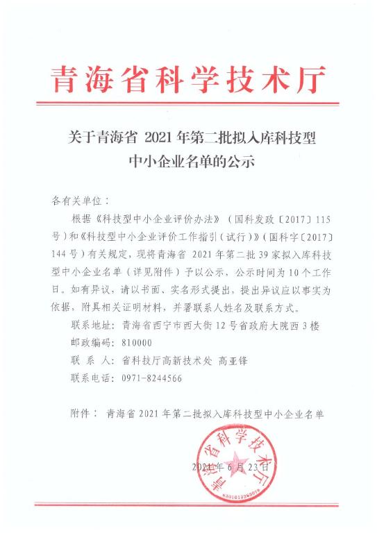 青海省2021年第2批拟入库科技型中小企业名单公示正文.jpg PICTURE