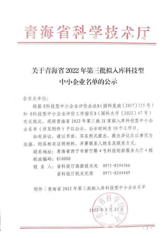 青海省2022年第3批拟入库科技型中小企业名单公示正文.jpg PICTURE