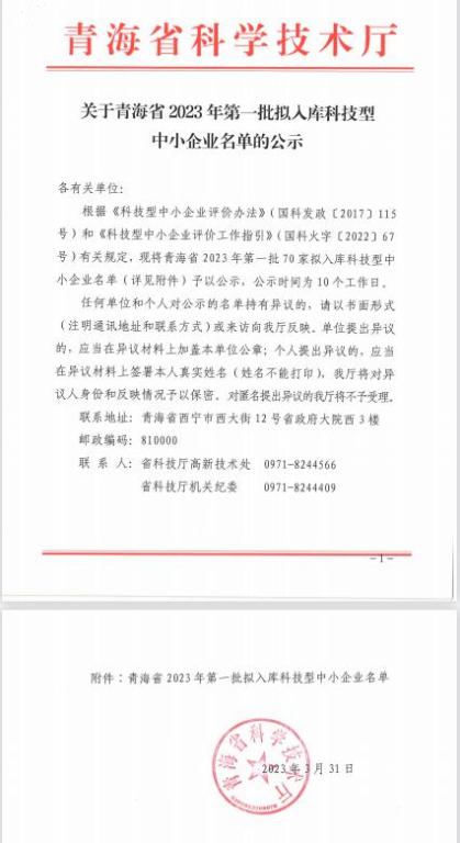 青海省2023年第1批拟入库科技型中小企业名单公示正文.jpg PICTURE