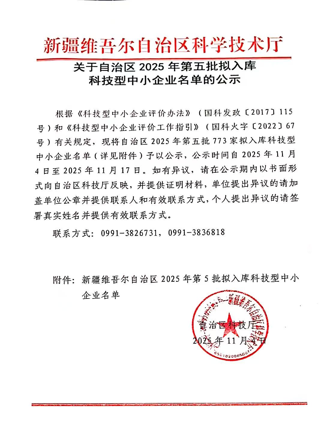 新疆维吾尔自治区2025年第5批拟入库科技型中小企业名单公示正文.jpg PICTURE