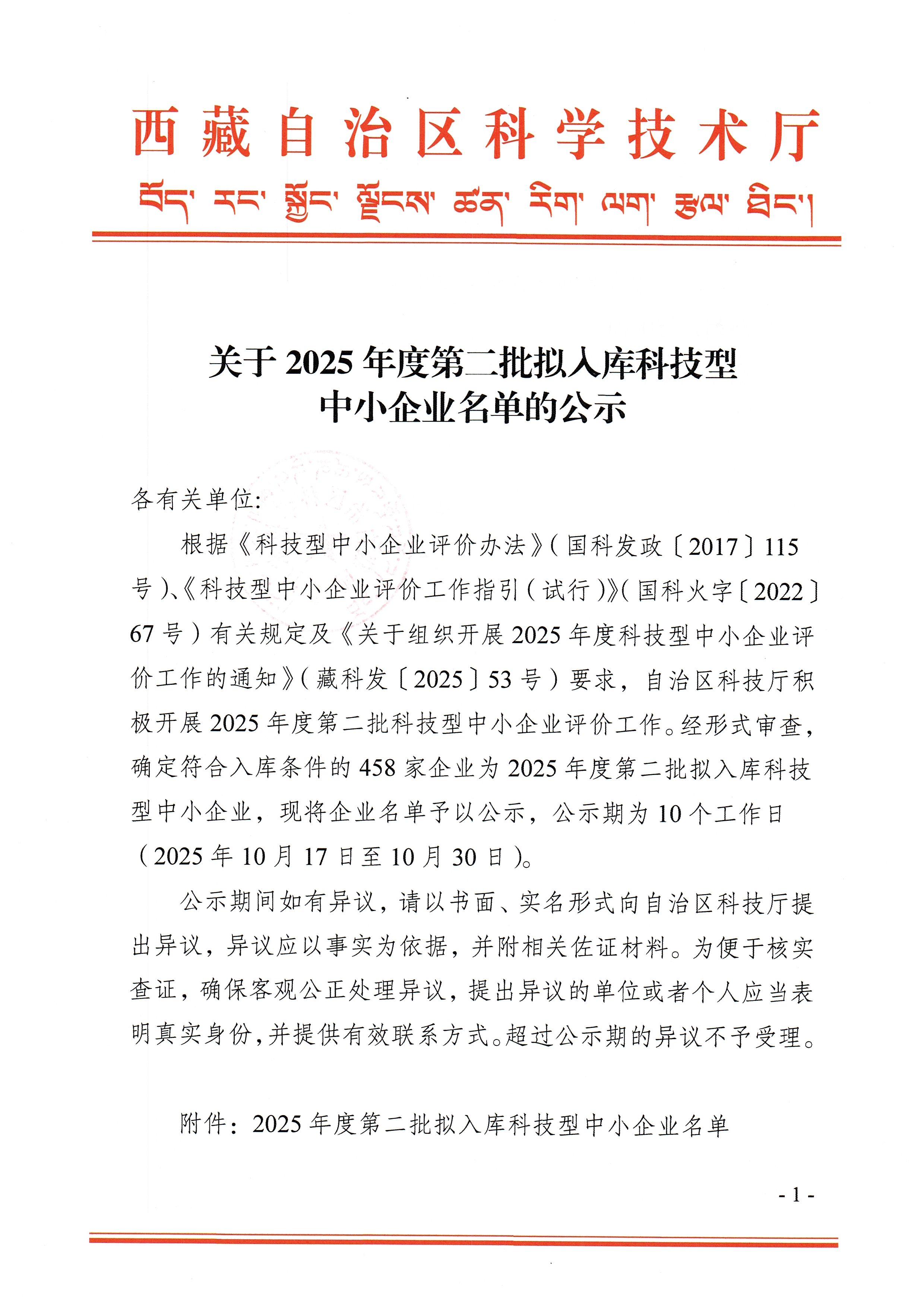 西藏自治区2025年第2批拟入库科技型中小企业名单公示正文.jpg PICTURE