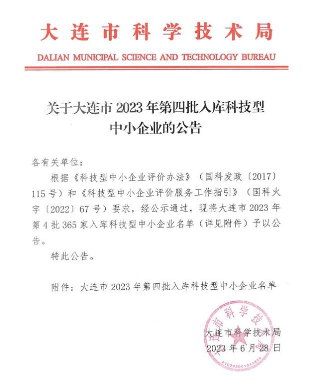 大连市2023年第4批入库科技型中小企业名单公告正文.jpg PICTURE