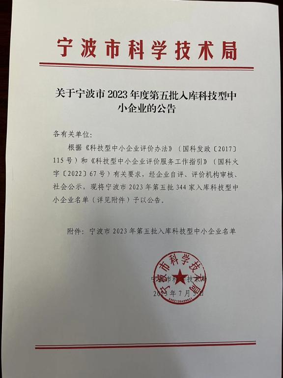 宁波市2023年第5批入库科技型中小企业名单公告正文.jpg PICTURE
