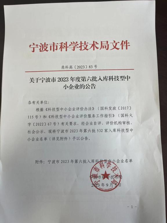 宁波市2023年第6批入库科技型中小企业名单公告正文.jpg PICTURE
