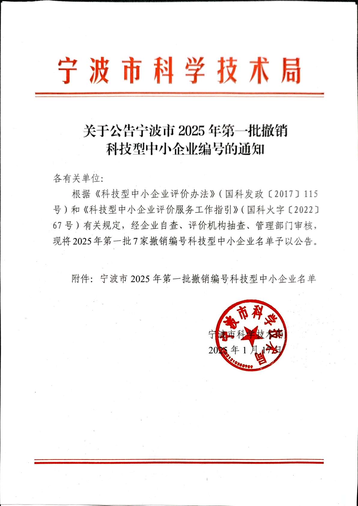 关于2025年第一批撤销科技型中小企业编号的公告.jpg PICTURE