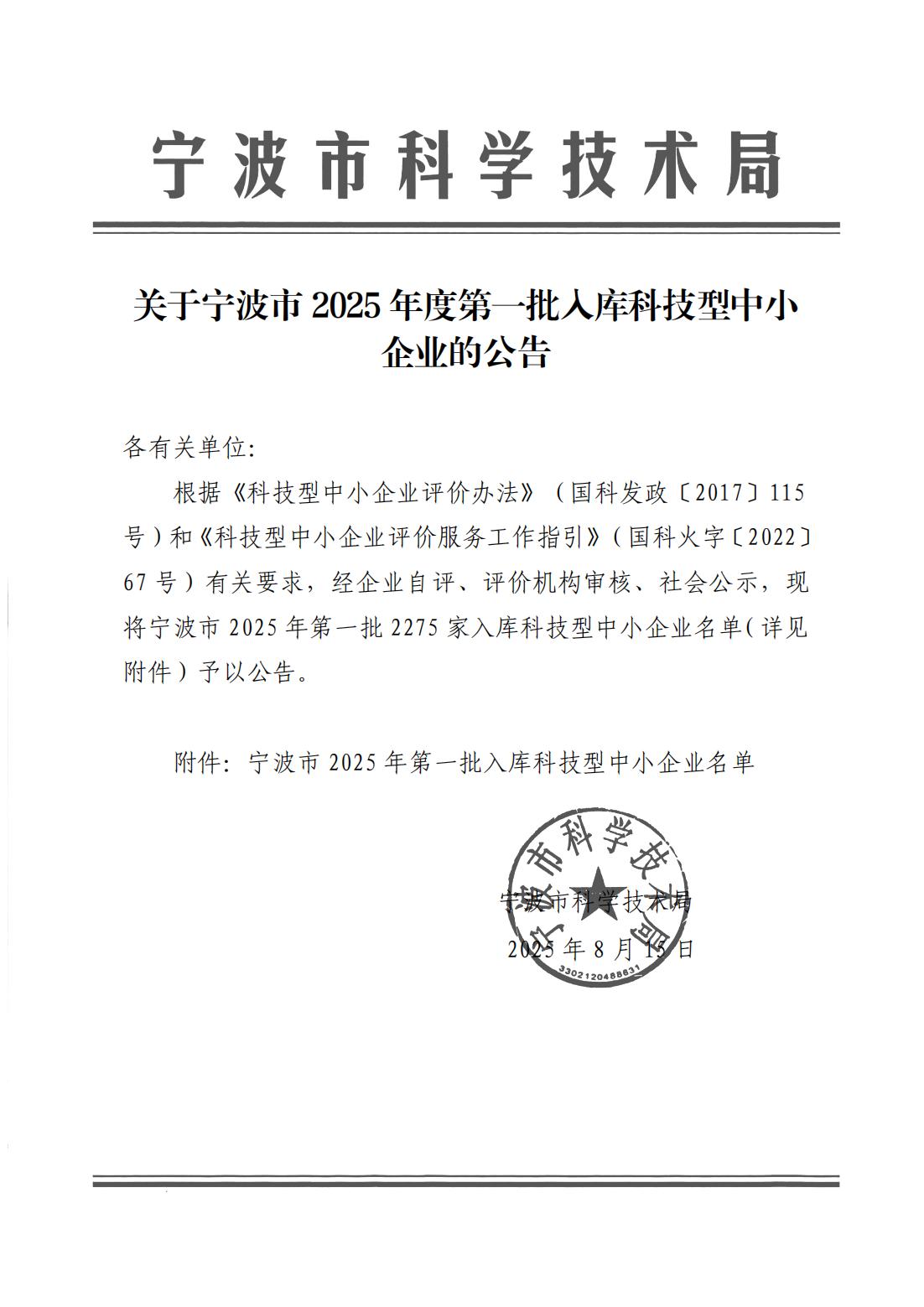 宁波市2025年第1批入库科技型中小企业名单公告正文.jpg PICTURE