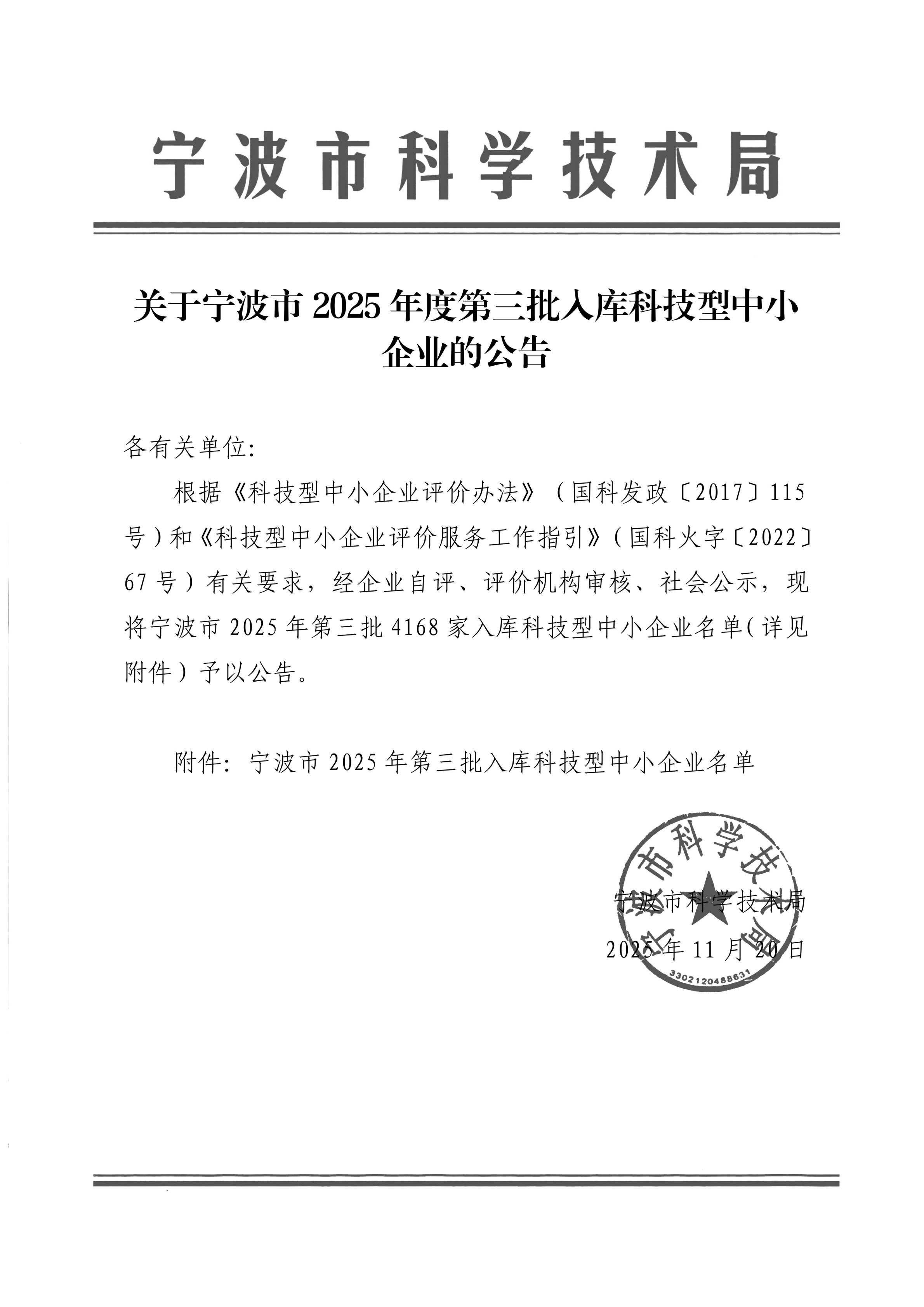 宁波市2025年第3批入库科技型中小企业名单公告正文.jpg PICTURE