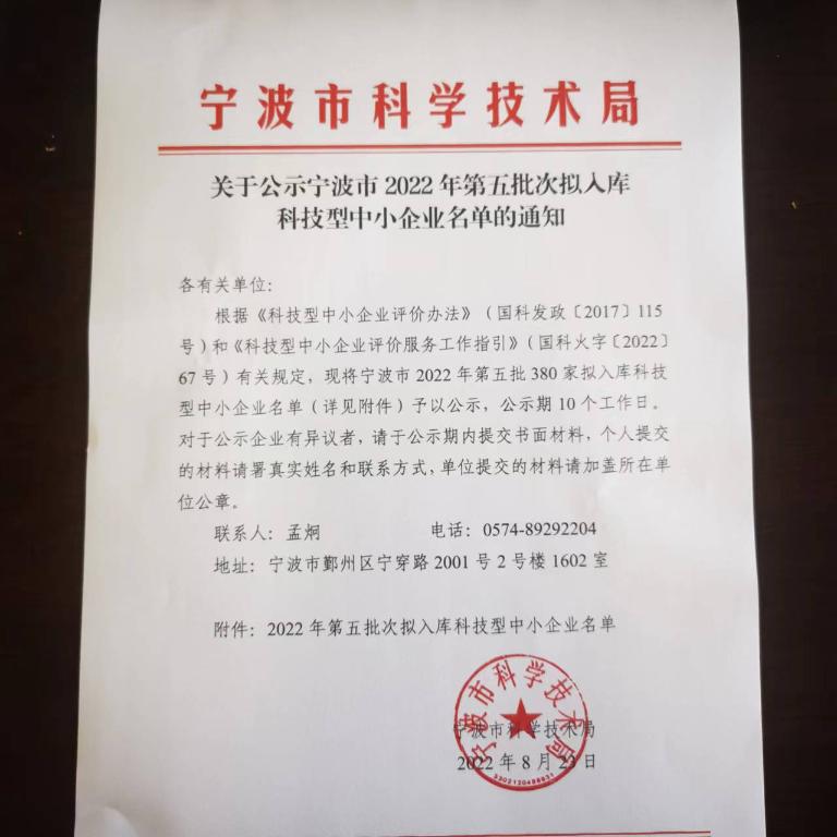 宁波市2022年第5批拟入库科技型中小企业名单公示正文.jpg PICTURE