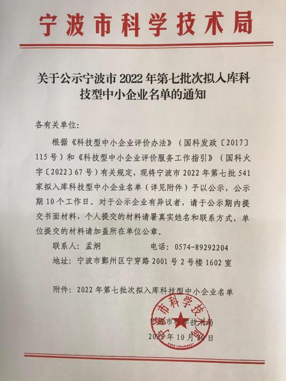 宁波市2022年第7批拟入库科技型中小企业名单公示正文.jpg PICTURE