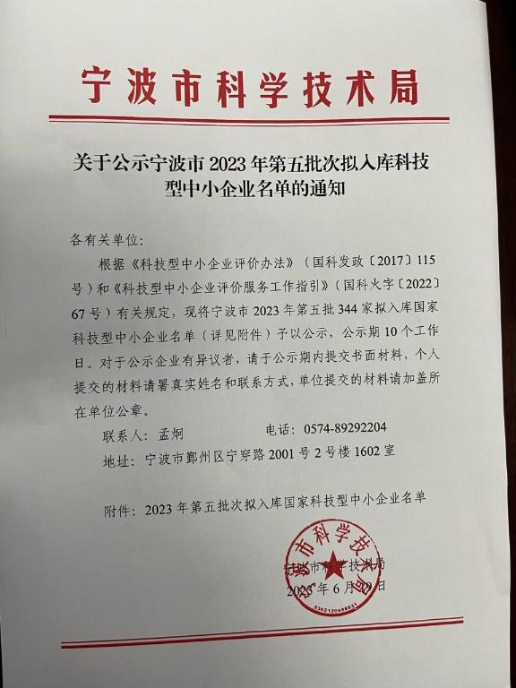宁波市2023年第5批拟入库科技型中小企业名单公示正文.jpg PICTURE