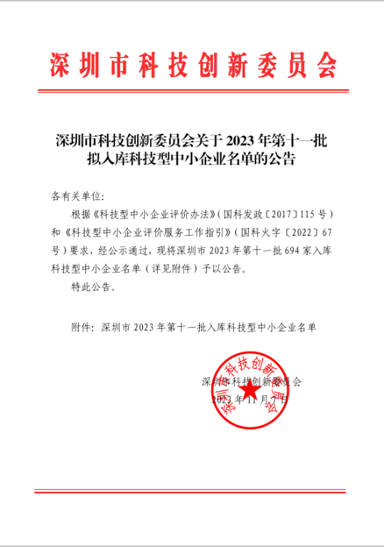 深圳市2023年第11批入库科技型中小企业名单公告正文.jpg PICTURE