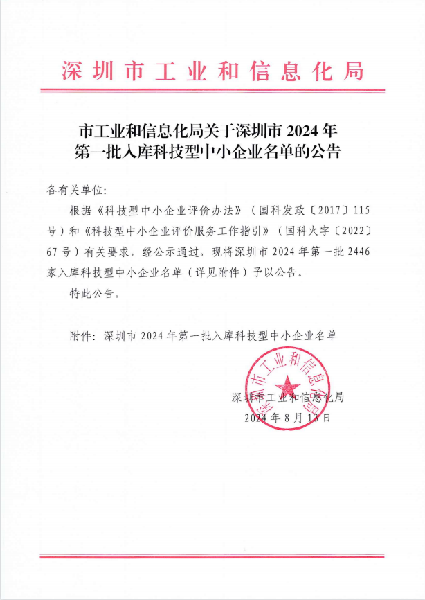 市工业和信息化局关于深圳市2024年第一批入库科技型中小企业名单的公告附件.pdf FILE