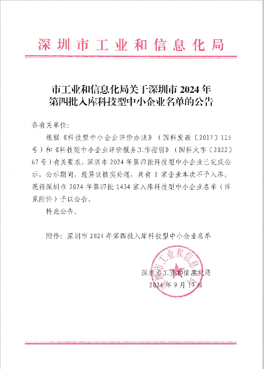 深圳市2024年第4批入库科技型中小企业名单公告正文.jpg PICTURE