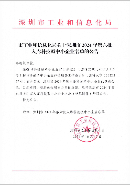 深圳市2024年第6批入库科技型中小企业名单公告正文.jpg PICTURE