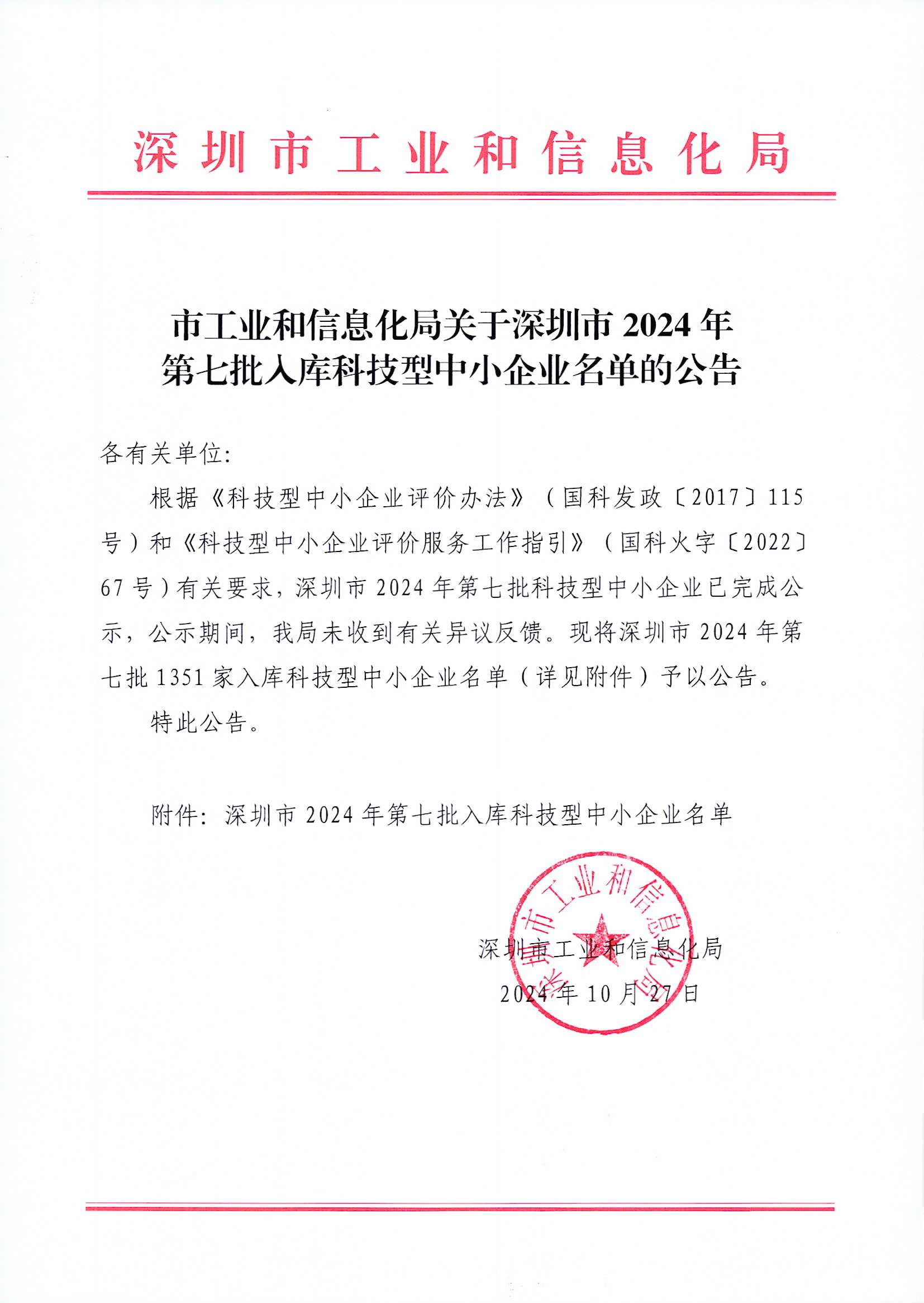 深圳市2024年第7批入库科技型中小企业名单公告正文.jpg PICTURE